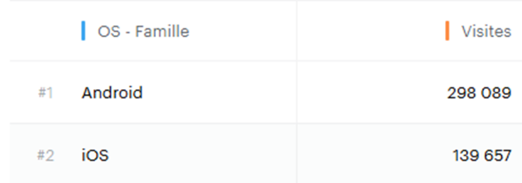 Une autre méthode serait d’associer chacun de nos stores à une propriété de notre data model qui remonte déjà plus ou moins cette information, possibilité qui est offerte par les measurements . Dans mon cas, j’ai utilisé la propriété standard « OS – Famille (os_group) » qui remonte le système d’exploitation du visiteur : Android ou iOS.