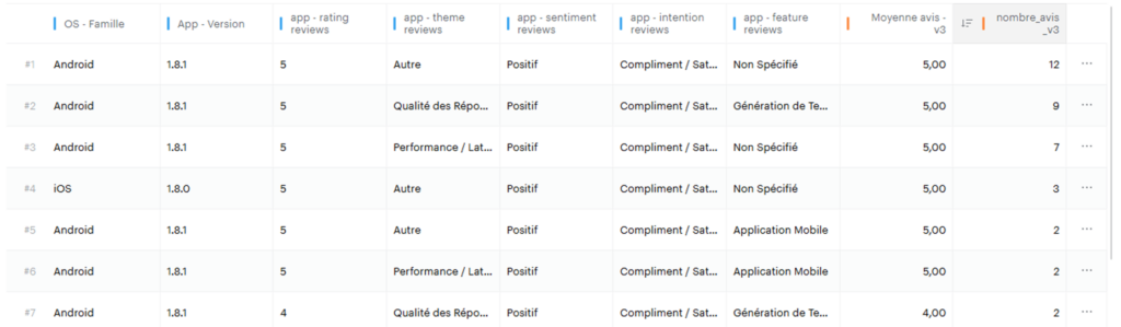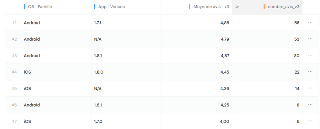 Bien, maintenant qu’on a la logique, pourquoi ne pas continuer l’optimisation ? On récupère via les stores les versions de l’application qui ont été utilisées pour laisser l’avis . Cette information existe également dans le data model de Piano : app_version .