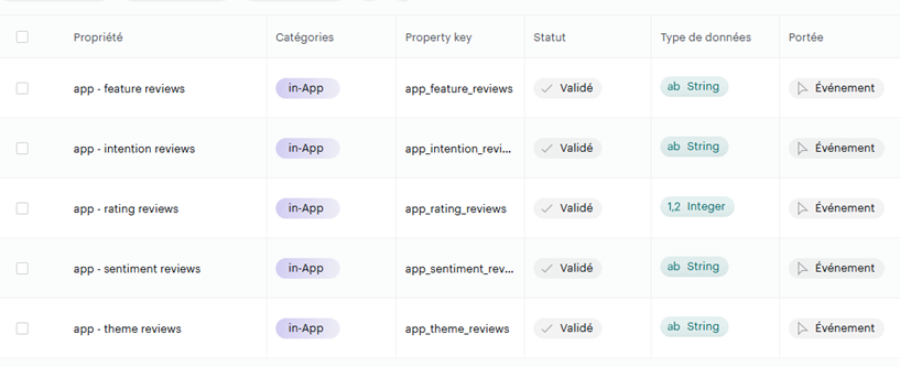 En réalité, notre data set regorge d’informations qui n’ont pas encore été poussées vers Piano (note laissée, thème abordé, sentiment…) :